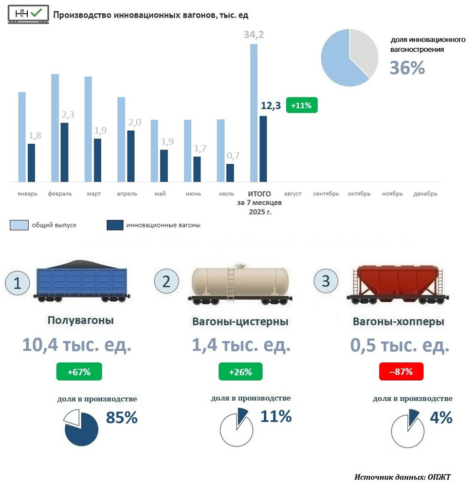 ДАННЫЕ ПО ВЫПУСКУ ГРУЗОВЫХ ВАГОНОВ ЗА 7 МЕСЯЦЕВ 2025 ГОДА